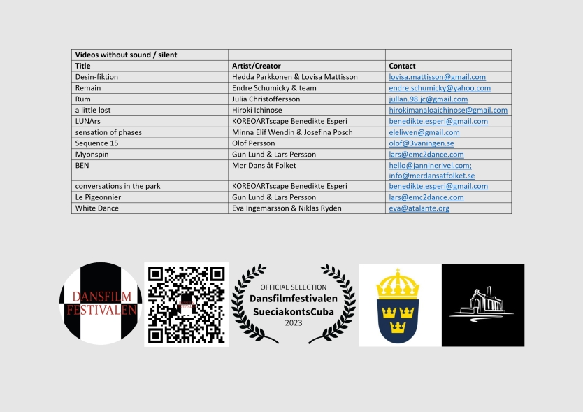 6-19th Nov Dansfilmfestivalen Satellit 4:4 screenings, workshops & production Havanna, Cuba Programa_CINEDANZA