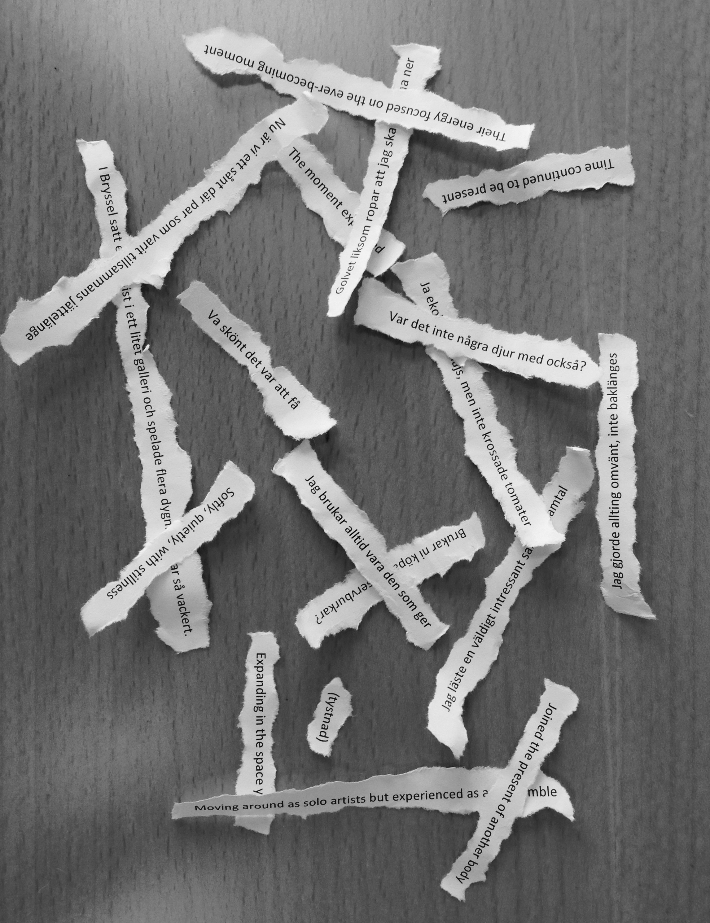 -en gestaltning av det improviserade samtalet mellan tre dansare vilka iscensätter ord och rörelser till en komposition