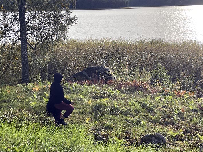 9-10/9 Änggårdsbergen, ute Göteborg Esperi/Larsdotter, solon. ‘Dans och rörelse i öppet rum, i skogen bland buskarna kan te sig både kontemplativt och okynnigt.’